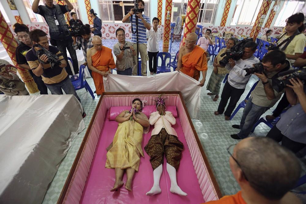 По этой причине, родственники умершего холостяка, стараются подобрать ему пару. Требования к невесте могут быть разными, но самые главные из них – девушка должна быть незамужней и мертвой. Свадьба умерших молодоженов мало чем отличается от обычного бракосочетания. Приходят гости, дарят подарки, все едят и пьют. Кульминация церемонии – момент соединения жениха и невесты. Тело девушки выкапывается из могилы и кладется к мужу. Тот факт, что жених и невеста никогда не знали друг друга при жизни, никого не останавливает.